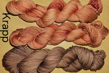 Am Wochenende habe ich mit Krapp gespielt. Merinowolle vom Feinsten. Einmal mit und einmal ohne Eisensulfat. Heraus kamen zwei sehr unterschiedliche Farben. Daraus soll ein Tuch entstehen. Ich zeige es dann auf alle Fälle.